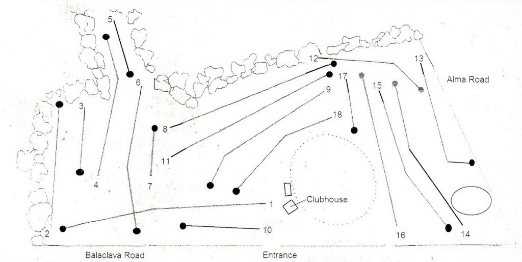 The difficult approach to this green can stump even the best of golfer, with out-of-bounds long and not much landing area in front of the green. Crosses over the first fairway, heading towards the old clubhouse.